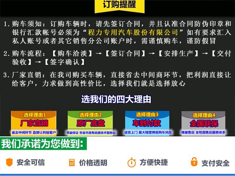 交付方式:客户可自提车辆,也可协商由我公司安排送车并协定相关费用.更多详细订车流程请来电咨询!